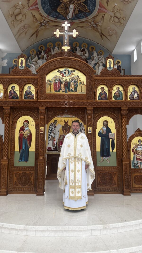 Fr. Vidoslav Vujasin (Fr. Vido, as he prefers) was born on Vidovdan (St. Vitus Day), and grew up in Germany, in a pious Serbian Orthodox family. He regularly attended the Divine services in Dusseldorf, Germany, where he served as an altar boy from early childhood. Fr. Vidoslav completed the Serbian Orthodox Priest Seminary in Sremski Karlovci, Serbia, in 1998 and returned to Germany to further his education. He studied at the Ludwig Maximilian University in Munich, earning his Master of Divinity degree in Orthodox Theology in 2005. He is fluent in Serbian, German, and English and knows the basics of Russian, Italian, and Greek. He was ordained to the priesthood in 2001 and served parishes in Munich (Germany), Innsbruck (Austria), Portland (Oregon), and some mission parishes in Switzerland and Austria. During his tenure in Austria, Fr. Vidoslav also taught Orthodox religious classes to students in government-run elementary, middle, and high schools. In June 2021, he became the rector of St. Archangel Michael church in Saratoga, California. Fr. Vidoslav is married to Protinica Carolina.